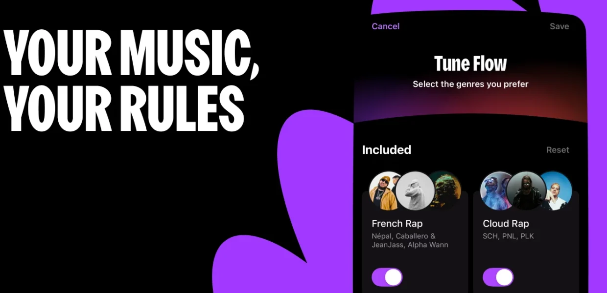 - Toggle genres on or off in one tap, instantly switch off what’s not hitting right, or bring back an old favourite when the mood changes.