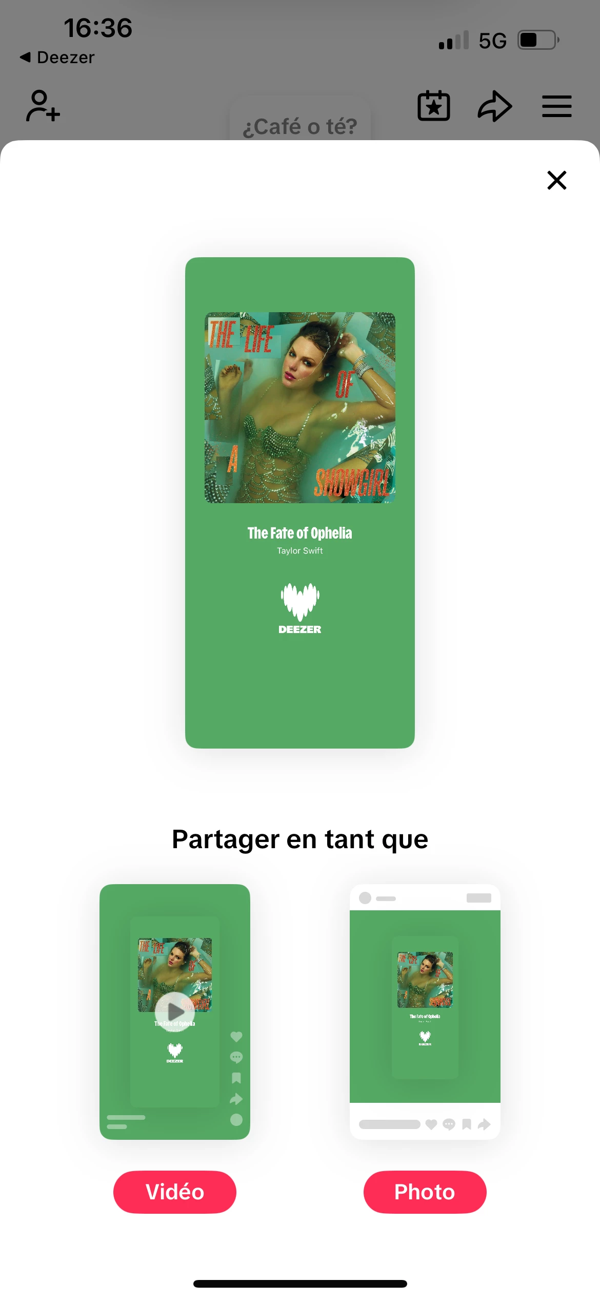 Clique sur le bouton Partager depuis Deezer, et tu peux poster :